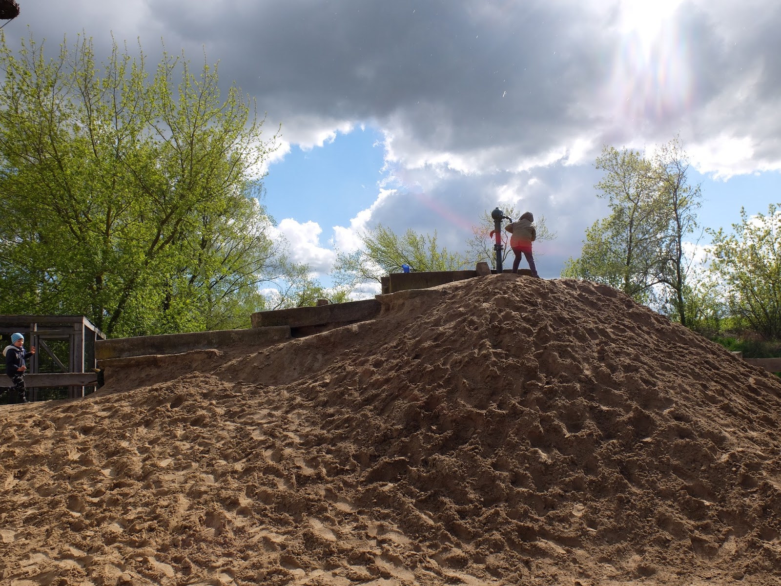 Za budynkiem w którym znajduje się ekspozycja, jest niewielki ogród w którym między innymi jest ścieżka bosych stóp. Fajne doświadczenie, koniecznie spróbujcie – Roma tą ścieżkę przeszła chyba 20 razy :). Z ogrodu wychodzi się na bardzo przyjemna ścieżkę przyrodnicza, główna jej cześć biegnie wzdłuż rzeki, później zaczynają się rozlewiska na których można obserwować rożne ptaki. Spacer okazał się bardzo przyjemny, żałowaliśmy tylko że nie mieliśmy lornetki.