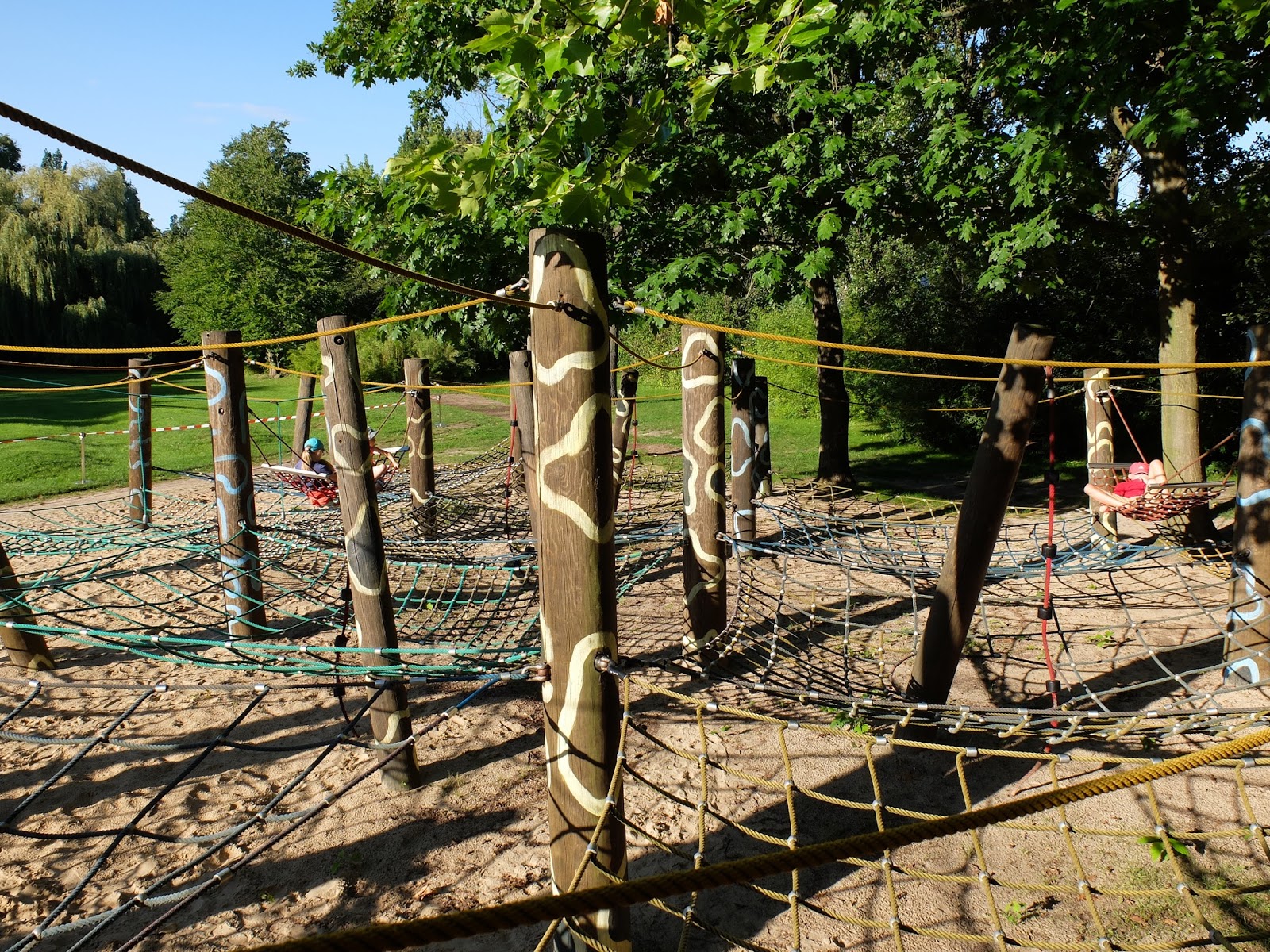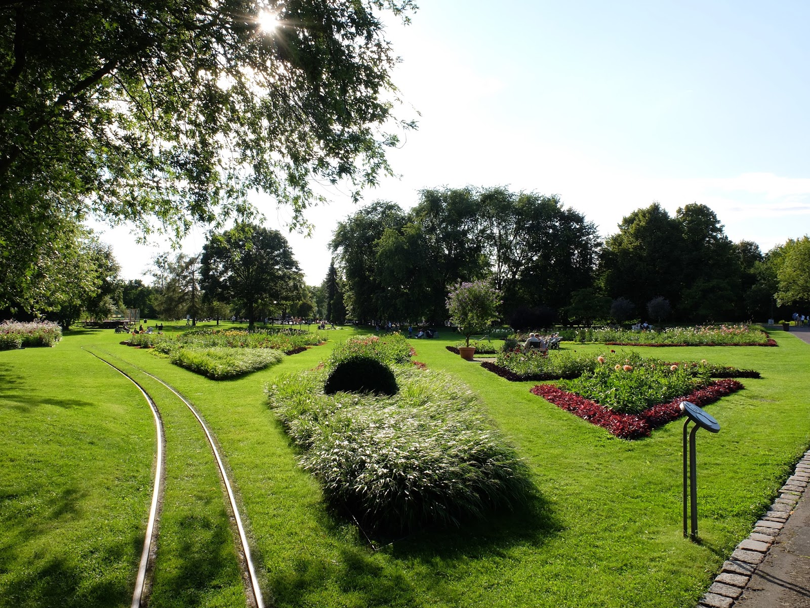 Dorośli również nie będą rozczarowani, bo Britzer Garten jest doskonałym miejsce na relaks, są łąki na których można rozłożyć koc i zrobić piknik, są przygotowane krzesła, leżaki i hamaki. Można przyjść z książką bądź gazetą i relaksować się cały dzień. Dla głodnych, po całym ogrodzie porozrzucane są punkty małej gastronomii ale znajdziemy również dwie restauracje w których można zjeść coś konkretniejszego. Są dwa jeziorka, kolejka, którą można objechać cały ogród, place zabaw, huśtawki, górka z której można się poturlać (moje dziecko turlało się z niej dobre 30 minut). Są oczywiście również miejsca, gdzie można podziwiać przepiękne kwiaty, np. ogród różany bądź cudowne dalie.