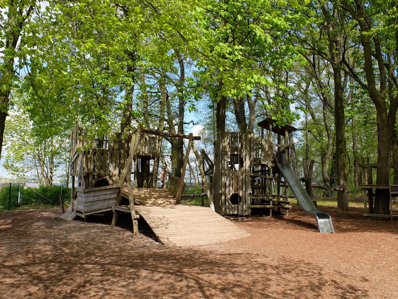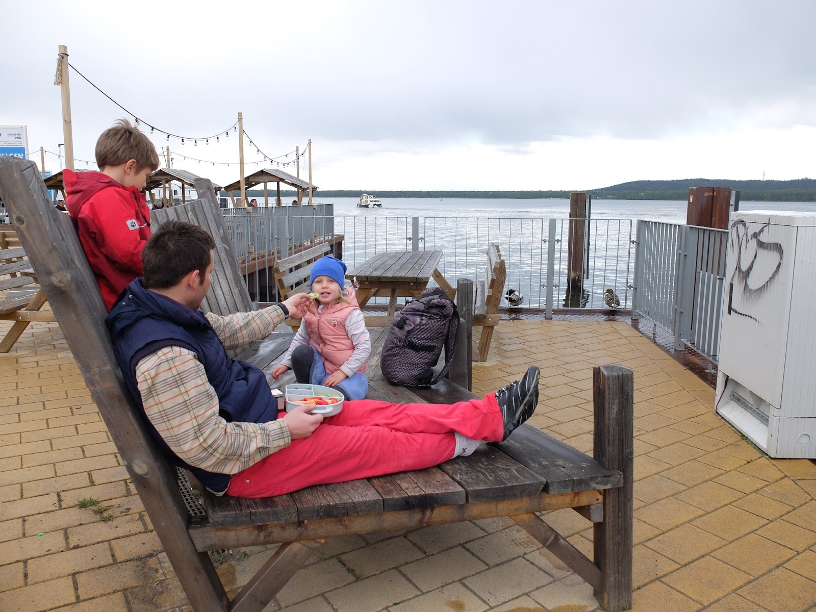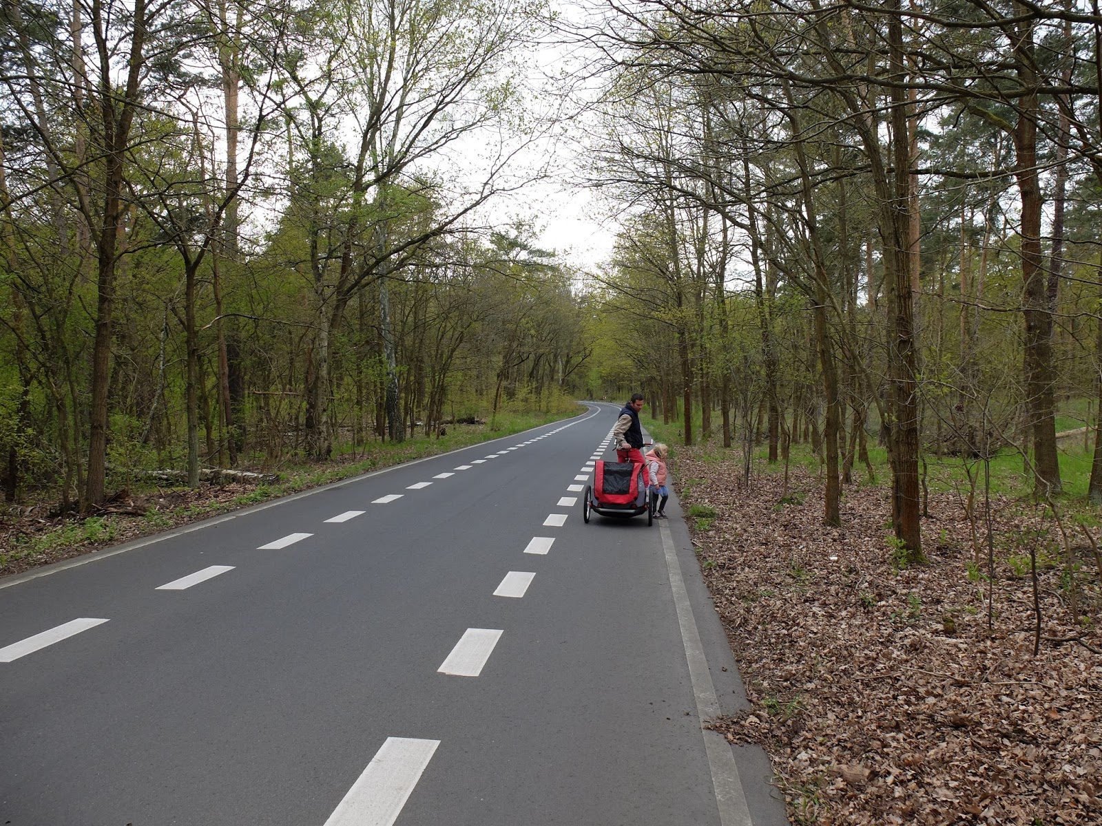 Pierwszego dnia majówki wybraliśmy się nad jezioro  Müggelsee. Jest ono położone w dzielnicy Köpenic na południowym wschodzie Berlina. Postanowiliśmy objechać jezioro dookoła, prowadzi tamtędy ścieżka rowerowa. My rozpoczęliśmy nasza trasę w Rübezahl. Zrobiliśmy to przez zupełny przypadek, ale super wyszło, bo znajduje się tam fajny plac zabaw i dzieci miały okazję wyszaleć się przed siedzeniem w przyczepce rowerowej.