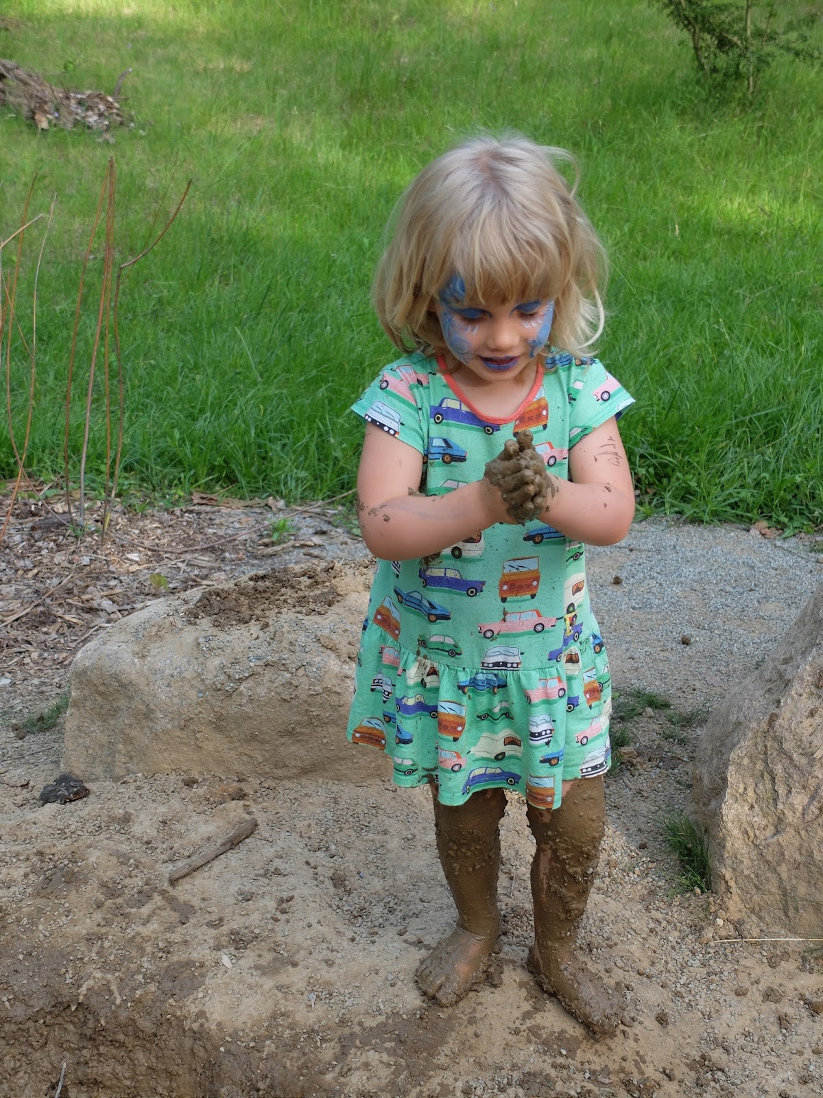 Dzieci mogą sobie tam przychodzić w wolnych chwilach i zajmować się ciekawymi rzeczami: zbudować coś przy użyciu prawdziwych narzędzi, wziąć udział w różnych warsztatach, np. ogrodniczych, zajmować się zwierzętami (zazwyczaj na tych placach zabaw znajdują się kozy, kury, króliki bądź świnki morskie, konie). Są to zazwyczaj takie inicjatywy społeczne, w jakiś sposób dotowane przez miasto ale również często utrzymujące się z datków. Mnie osobiście bardzo się te place zabaw podobają bo dzieci mogą spróbować różnych ciekawych rzeczy, których nie mają na codzien. My akurat rafilismy do Moorwiese w trakcie trwania festynu organizowanego przez spółdzielnię mieszkaniową więc wyglądało to trochę inaczej niż zazwyczaj ale dzieciaki i tak miały dużo frajdy. Roma np. wypackala się cała w błocie, a Marcel postrzelał z łuku. Mam nadzieję, że uda nam się jeszcze w to miejsce wrócić w niedługim czasie.