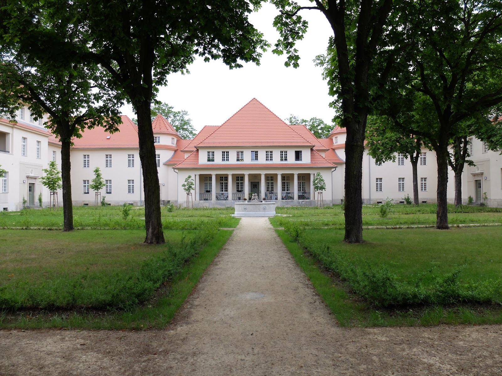 Następnie udaliśmy się do leżącego prawie na przeciwko Ludwig Hoffman Quartier – dawny teren i budynki największego w DDR szpitala przekształcono w osiedle mieszkaniowe. I ja muszę napisać, że efekt jest WOW! Chodziłam po tym ogromnym terenie zauroczona, i ja tam mogłabym zamieszkać! Przepięknie tam jest, architektura tych poszpitalnych budynków powala, dopracowana w każdym szczególe, a tereny wokół budynków naprawdę zachwycają – jest bardzo przestronnie, zielono, jest dużo architektury małej – altanki, fontanny, posągi, no po prostu jestem zachwycona. Są oczywiście też dwa place zabaw dla dzieci.Ten Ludwig Hoffman to był gość, szkoda, że już teraz się tak nie buduje. Więcej na ten temat możecie przeczytać w bardzo ciekawej książce o Berlinie ’12 kawałków o murze berlińskim’ jest to zbiór reportaży o murze berlińskim ale w bardzo szerokim zakresie i dotykających wiele tematów. Reportaż o tym starym szpitalu jest bardo ciekawy, serdecznie polecam.
