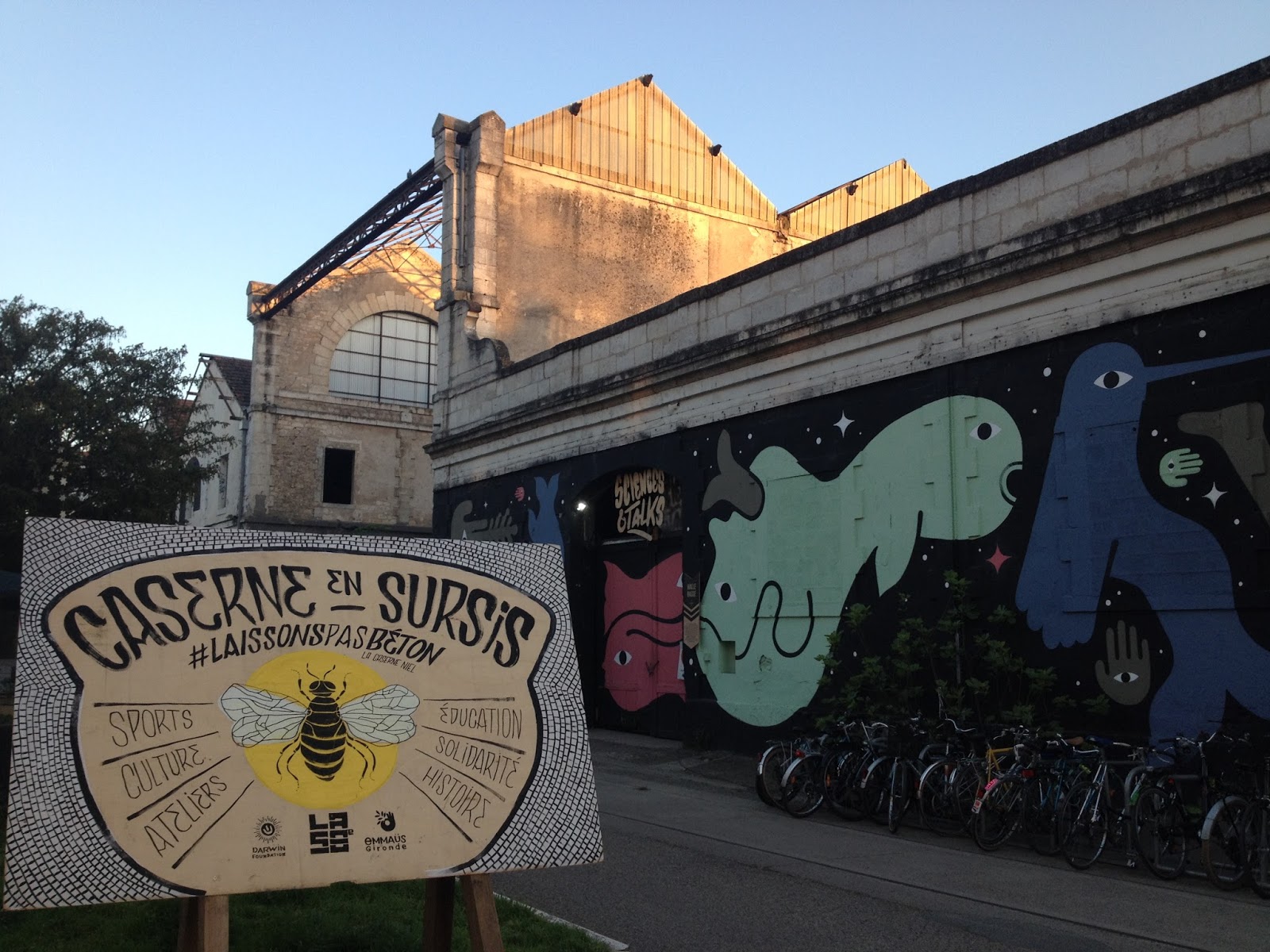 Darwin Eco-système. Fajne miejsce na kawę, piwo bądź burgera. Jest to takie ciekawe miejsce znajdujące się w dawnych barakach wojskowych. Miasto wydało zgodę, aby w tym podniszczonym miejscu ludzie mogli zacząć organizować coś fajnego. W zgodzie z natura, społecznego, ekologicznego. I z tego co widziałam, to fajnie im się to udało. Jest tam kilka kawiarni, market ekologiczny, mają ule i ogród społeczny. Jest wielki skatepark, i przestrzeń gdzie znajdują się super murale. Bardzo fajne miejsce, które trochę przypomina mi Off Piotrkowską bądź LX Factory w Lizbonie.