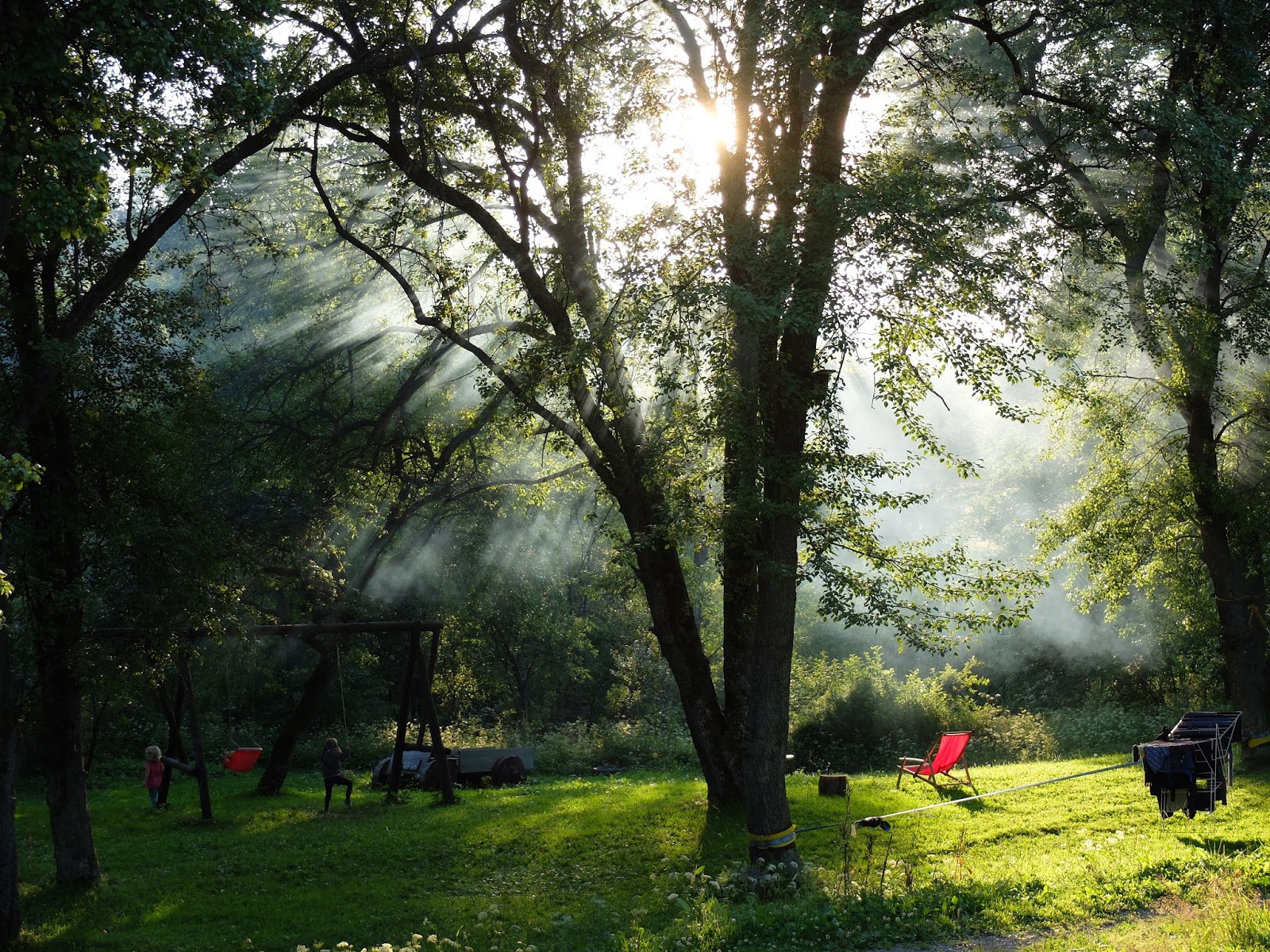 Po przyjeździe nie zawiedliśmy się: było super :). Niestety pierwsze 3 dni lało jak z cebra i to nie było już takie super, bo na takim uboczu niełatwo zająć dzieci, jednak duży regał z książkami dla dzieci, gry planszowe i bajki w telefonie przyszły z odsieczą. Na szczęście wzięłam również dzieciom kalosze i zestaw przeciwdeszczowy więc i tak wychodziliśmy jak padało trochę mniej.