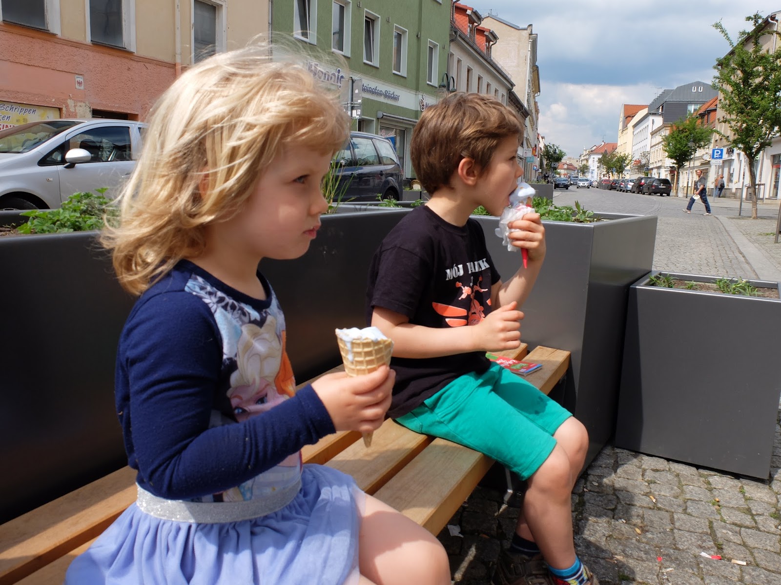 Dzieci jednak były przeszczesliwe, wyhasały się, pomoczyły nogi w jeziorze, pobawiły się na placach zabaw, byliśmy na lodach, taki bardzo przyjemny dzień to był.