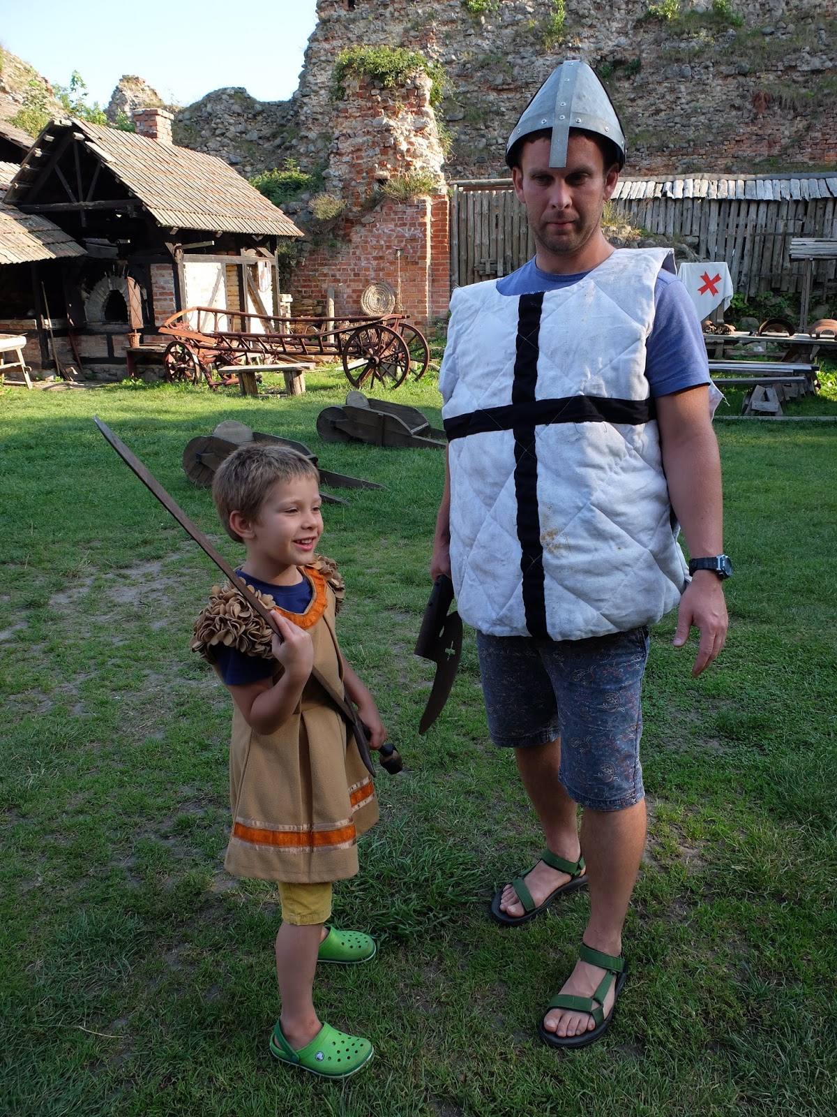 Stare Drawsko i Zamek Drahim. W Starym Drawsku spędziliśmy kilka przyjemnych godzin na plaży. Miasteczko jest pięknie położone między dwoma jeziorami, znajduje się w nim zabytkowy kościół z 1870 roku i ruiny zamku Drahim. Te ruiny…, no cóż, co prawda dzieciom się podobało, bo można tam przebrać się za rycerza, pobawić się mieczem czy toporem, a nawet wejść do klatki, ale prócz tego to nie jest to zbyt ciekawe miejsce. Okropne rekwizyty, okropne opisy, trochę to wszystko wygląda jak takie zbiorowisko śmieci, które nie za bardzo pasują do zamku i jego historii.