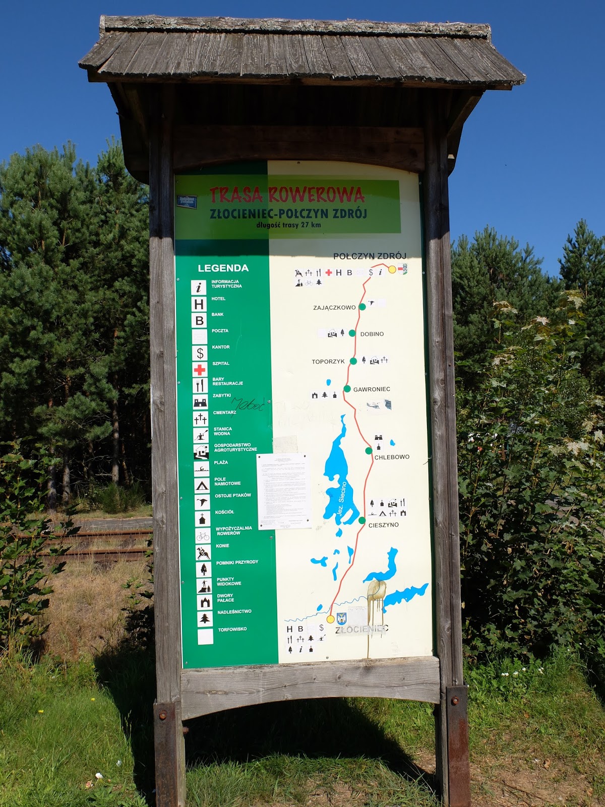 Część szlaku rowerowego Złocieniec- Połczyn Zdrój. My przejechaliśmy odcinek Cieszyno-Złocieniec. Szlak rewelacyjny, pięknie przygotowany. Jechaliśmy cały czas asfaltowa droga tylko dla pieszych i rowerów. Droga jest prosta i biegnie przez las. Dla Marcela i chyba dla każdego innego doskonała :). W Złocieńcu zatrzymaliśmy się na lody i odpoczynek, a potem z powrotem do auta. Łącznie zrobiliśmy 14km i jechało się naprawdę świetnie.